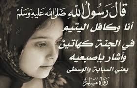 وقول الرسول صلى الله عليه وسلم : ( أنا وكافل اليتيم في الجنة هكذا) ، وأشار بأصبعيه : السبابة والوسطى ( متفق عليه).